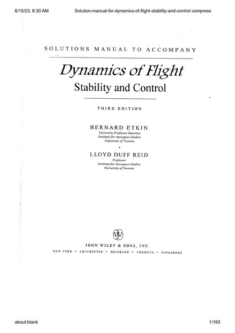Download online DYNAMICS OF FLIGHT STABILITY AND CONTROL SOLUTION MANUAL iBooks ManyBooks